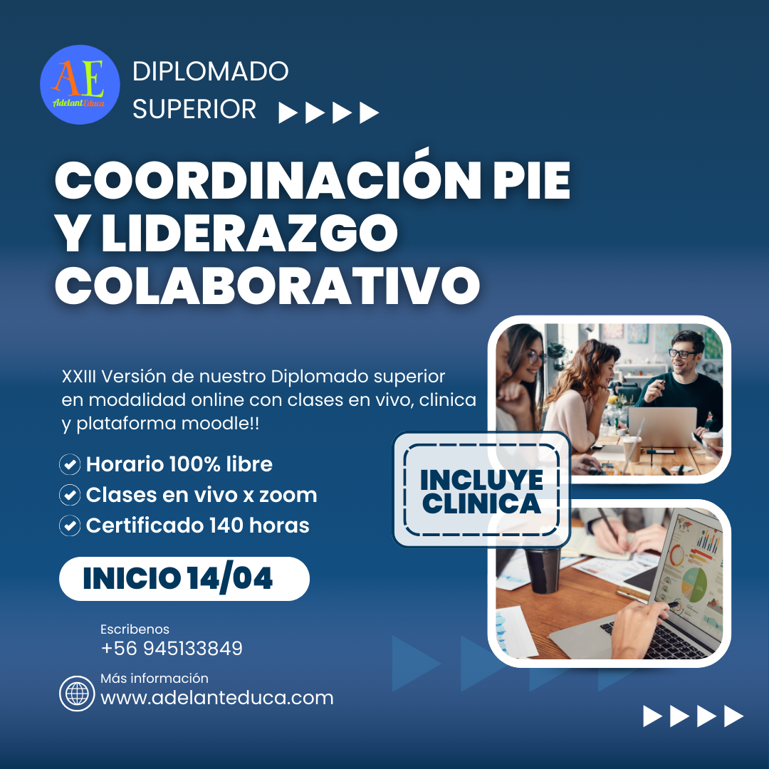 CONTENIDOS La importancia de la sensibilización en inclusión educativa, Paradigma del sistema actual chileno, prácticas educativas inclusivas, Normativas de inclusión educativa vigentes, Gestión de los Proyectos educativos institucionales, Gestión e implementación del Decreto 170, Documentación PIE, Roles y funciones del equipo directivo, tareas del coordinador, Llenado de documentación del decreto y procedimiento de FUDEI, Implementación del Decreto 83, Adecuaciones curriculares, Indicadores y habilidades de acuerdo al curriculum, Co-docencia, modelos y estilos de acuerdo a la realidad de la comunidad educativa, Registro de PlE. Tipos de liderazgo efectivo y colaboración, estrategias de equipos efectivos, planificación conjunta y fortalecimiento de equipos interdisciplinarios